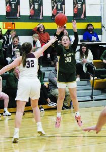 The Indians’ Brea Mertz puts in a shot for 2 early in their playoff win over JWP Tuesday night. Mertz got 14 points and 14 rebounds in the game. CJ Surprenant